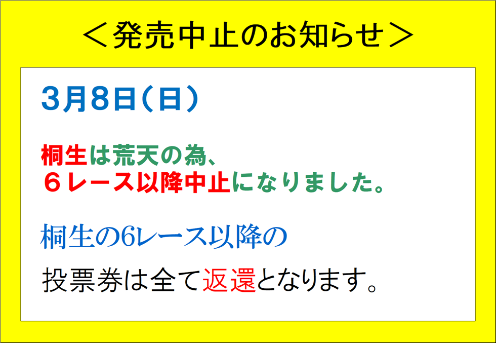 3月8日 発売中止のお知らせ